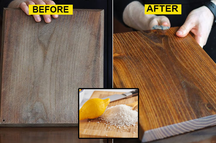 Keep your cutting boards clean and fresh with lemon and salt. Sprinkle coarse salt on the board and use a halved lemon to scrub it, squeezing the juice as you go. This natural method is effective at removing stains and odors, keeping your cutting boards in excellent condition.
