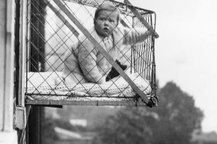 In 1937, the “baby cage” emerged as an unusual but practical solution to a common problem—how to give babies fresh air in overcrowded urban environments. Suspended from the side of a building, this tiny enclosure provided a glimpse of the outside world for a small child, who gazed out with wide, curious eyes, much like our own. It was a bold, albeit unconventional, way to solve a modern parenting dilemma in the midst of city life.