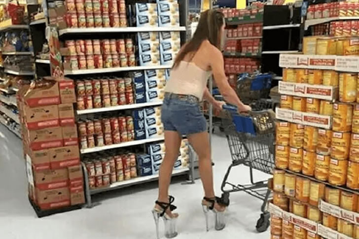 These are arguably the tallest high heels we’ve ever seen. What’s even more astonishing than the heels themselves is the choice to wear them to Walmart, of all places!