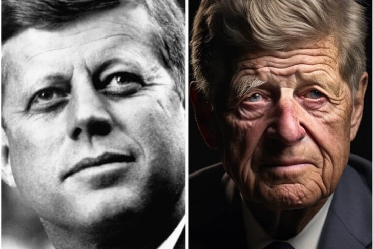 At just 46, President John F. Kennedy was assassinated in Dallas, Texas, while riding in an open-air motorcade with his wife. Having served only 1,036 days in office, his death shocked the nation. In this AI depiction, Kennedy shows typical signs of aging, like wrinkles, age spots, and reduced skin elasticity.