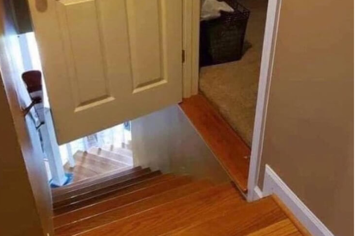 Home improvement projects vary widely, but the outcome of this particular renovation leaves much to be desired. It’s baffling how a floating doorway positioned above the main staircase, complete with a perilous step, ever got approved. This design not only invites trouble but also causes a headache just by observing it.
